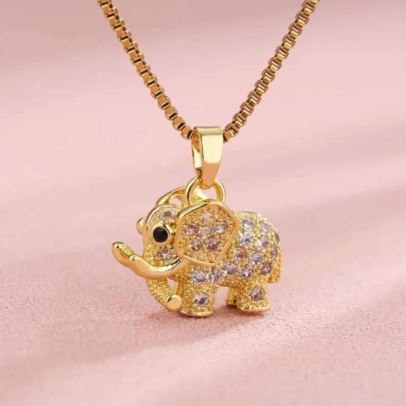 Collar de acero inoxidable dorado, con forma de elefante tridimensional, con incrustaciones de circonita blanca, cadena estilo serpiente de 45 cm